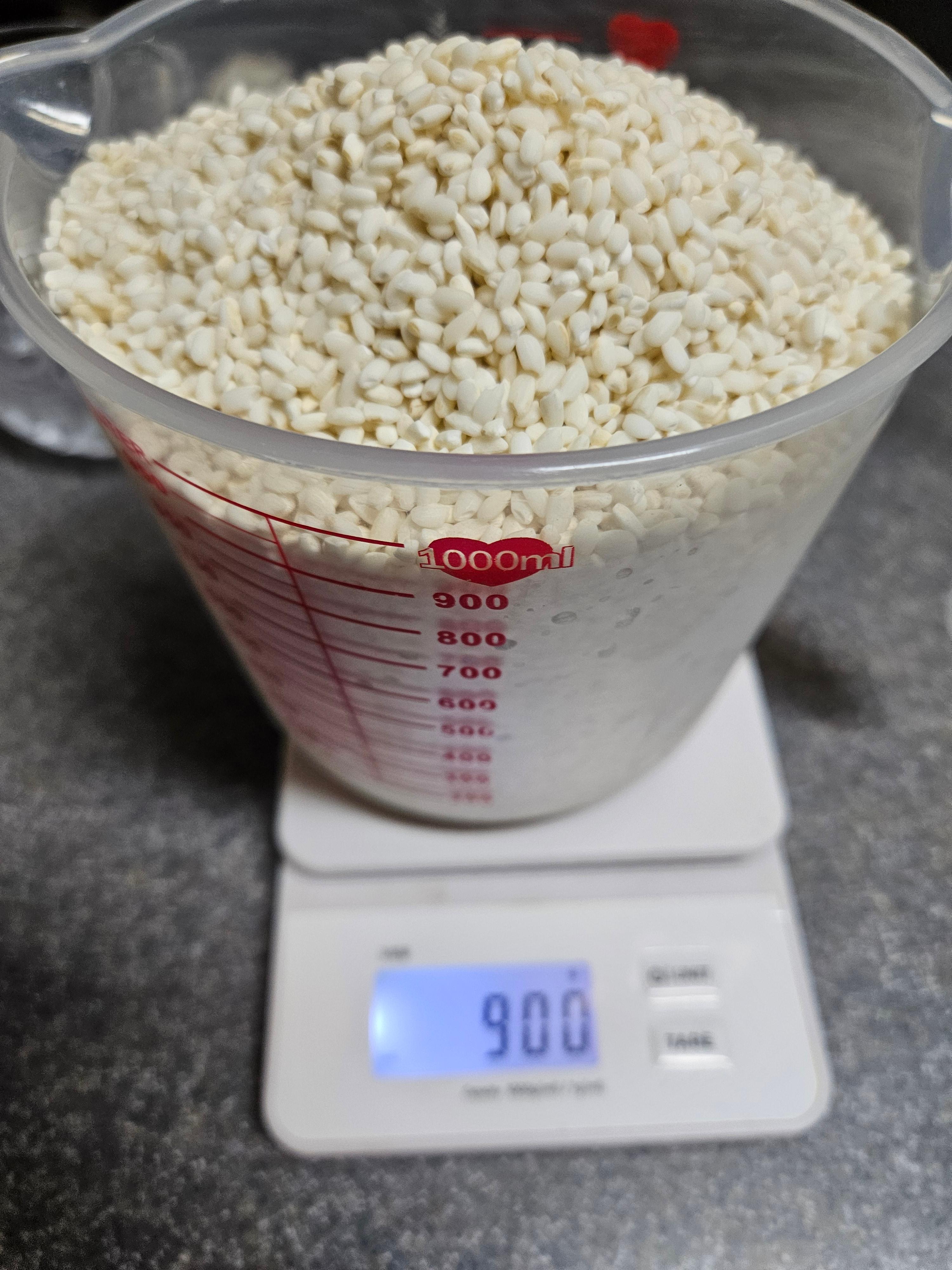 찹쌀 900g을 조심히 씻습는다. 쌀알이 깨지면 술 맛이 없어지므로 최대한 조심히 씼어줍니다.